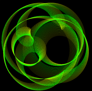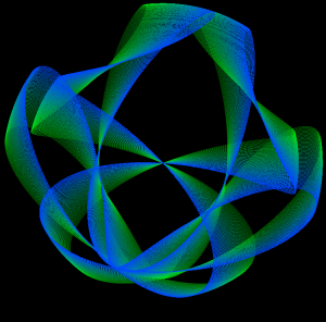 BeschreibungLissDreh zeichnet Lissajous-Figuren, denen eine Drehbewegung überlagert ist. Eine ausführliche Dokumentation im PDF-Format finden Sie hier.Screenshotslinks: X-Frequenz / Y-Frequenz / Drehfrequenz = 0.999 / 4.002 / 5; rechts: 5 / 2 / 1.001
